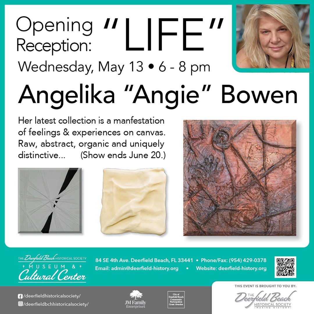 Artist Exhibit Opening Reception: Angelika Bowen’s “Life,” – May 13 (art showing in the gallery until June 20)