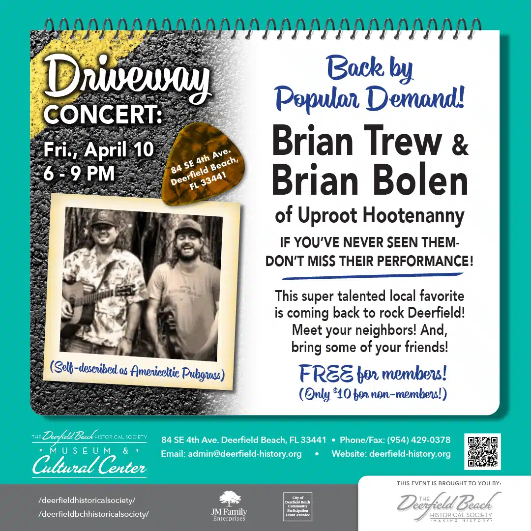 Driveway Friday Concert: Brian & Brian – Friday, April 10 Tickets The numbers below include tickets for this event already in your cart. Clicking "Get Tickets" will allow you to edit any existing attendee information as well as change ticket quantities. April 10 Driveway Friday Concert Brian & Brian $0.00 Unlimited Decrease ticket quantity for April 10 Driveway Friday Concert - Quantity Increase ticket quantity for April 10 Driveway Friday Concert +