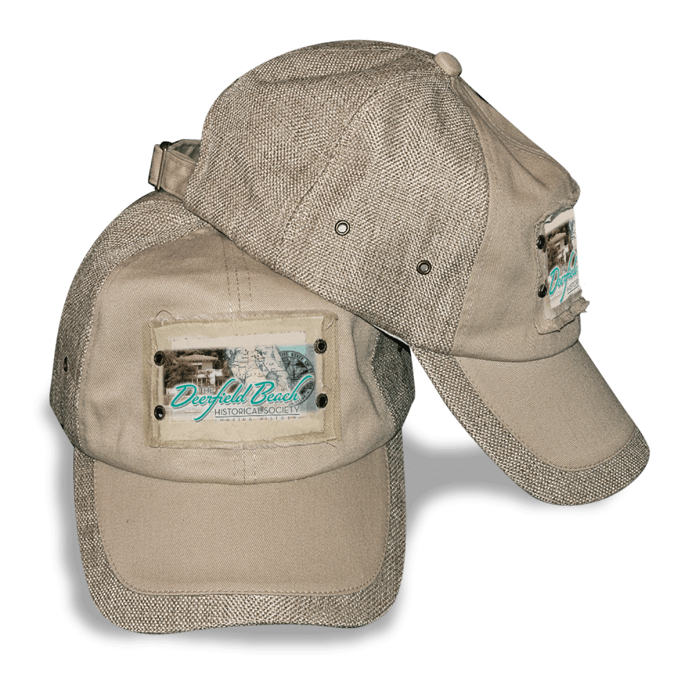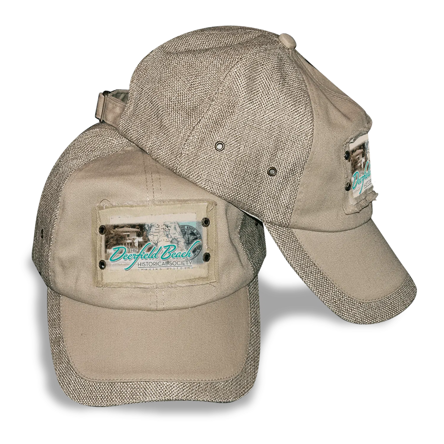 Sports cap with a Deerfield Beach Historical Society logo and graphic.